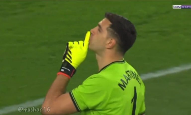 Algerian Ben Taleb lost his mind after missing the penalty kick and shot the ball with full force towards goalkeeper Martinez in a t.errifying way that made the assistant referee terrified by this strange scene.