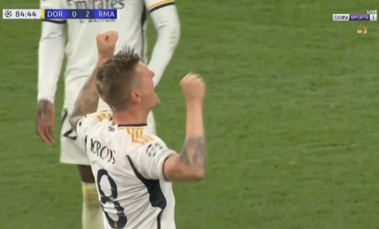 Kroos exploded with crazy, hysterical joy with the fans in the stands, forcing them to stand up from their seats, and Ancelotti greeted him on the line in a shot that made him shudder.